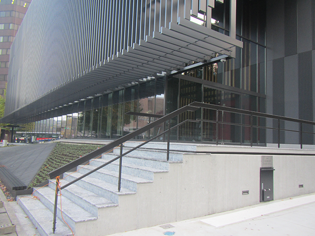 アルミよりも強度があるので、細いラインで強度が保てる銅製カーテンウォールは、幅広い意匠建築に適しています。